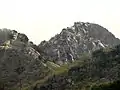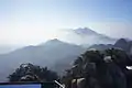 Bukhansan (Korean: 북한산, lit.'North Han Mountain'), or Bukhan Mountain, is a mountain on the northern periphery of Seoul, South Korea. There are three major peaks, Baegundae 836.5 meters (2,744 ft), Insubong 810.5 meters (2,659 ft), Mangyeongdae 787.0 meters (2,582.0 ft).[1] Because of its height and the fact that it borders a considerable portion of the city, Bukhansan is a major landmark visible from most city districts. The name "Bukhansan" means "mountain north of Han River", referring to the fact that it is the northern border of the city.[2] During the Joseon era, the peaks marked the extreme northern boundary of Seoul.