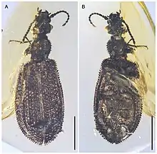 - ↑ Jarzembowski, Edmund A.; Wang, Bo; Zheng, Daran (October 2017). "Another amber first: A tiny tetraphalerin beetle (Coleoptera: Archostemata) in Myanmar birmite". Cretaceous Research. 78: 84–88. doi:10.1016/j.cretres.2017.05.023.