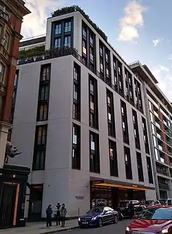 The hotel was built by Sir Robert McAlpine from 2010 to 2012,[4] in place of the former Normandie Hotel.[5] It was dedicated in May 2012.[2][6] It was designed by Antonio Citterio, Patricia Viel & Partners.[2] It was built with Portland stones.[2] There are ten floors up and six underground floors.