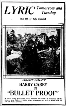 - ↑ "Bullet Proof: Two-Fisted Action in Harry Carey's Latest". Motion Picture News. New York City: Motion Picture News, Inc. 21 (19): 3901. May 1, 1920. Retrieved April 3, 2014.