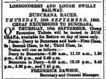 - ↑ "Cheap Excursions to Buncrana". Londonderry Sentinel. 11 September 1888.