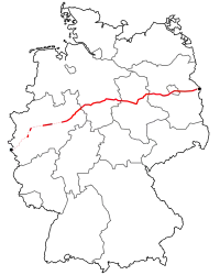 The road reaches Berlin's city limits at Glienicke Bridge and heads towards the inner city via Potsdamer Platz, Leipziger Platz and Leipziger Straße to Alexanderplatz. It leaves Berlin to the eastern side via Karl-Marx-Allee, Frankfurter Tor and Frankfurter Allee, joined by the Bundesstraße 5 for around 20 km up to Müncheberg, before reaching the Polish border.