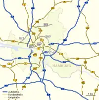 - ↑ Knittermeier, Frank (1 October 2002). "Norderstedt: B 433 wird wieder zur "Dorfstraße"" (in German). Hamburger Abendblatt. Retrieved 27 June 2017.