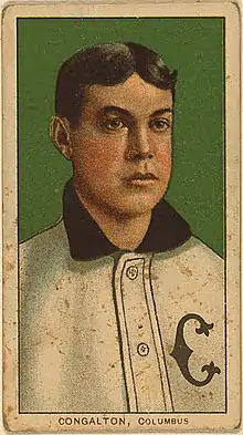 Congalton was a minor league star who twice led the Western Association in batting average.[2] He reached the major leagues at the age of 27 with the Chicago Orphans, then was back in the big leagues three years later with the Cleveland Naps. He was fourth in the American League in 1906 with a .320 batting average, and also ranked in the league's top ten for on-base percentage (.361), slugging percentage (.396), and home runs (3). Playing for Cleveland and the Boston Americans in 1907, his .282 average was tenth-best in the league.