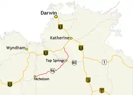 - ↑ Department of Transport (April 1998). "Map of all NT Roads" (PDF). Northern Territory Government. Archived from the original (PDF) on 5 May 2013. Retrieved 13 January 2014.
