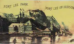 During the 19th century the Burdett's Landing neighborhood gradually developed as a resort. New Yorkers came to view the sleepy, pastoral little area as a recreational destination,[21] and in 1878 the large Fort Lee Hotel opened by the landing.[22] Also known as the Octagon House because of its design, the Fort Lee Hotel was accessible via ferry for New Yorkers. According to one pictorial history,