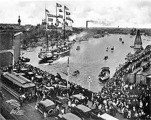 The Burgert Brothers were early photographers, most prominently known for documenting the growth of Tampa, Florida. Their photos span the late 1800s until the early 1960s.[1] They depict times of war, natural disasters such as the 1921 Tampa Bay hurricane, economic booms, economic busts, transportation, building projects, bungalows, African American life, cigar factories, sponge docks, strawberry fields, mercantile businesses, banks, and service stations. They also feature Florida leisure activities at parks and beaches including golf, shuffleboard, checkers, and tennis. Thanks to the prolific Burgert Brothers local events and traditions like the Gasparilla Pirate Festival and Florida State Fair have been well-documented.[2]