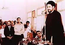 In the same year, Sadr founded Harakat al-Mahroumin ("Movement of the Deprived") and one year later – shortly before the beginning of the Lebanese Civil War – its de facto military wing: Afwaj al-Muqawama al-Lubnaniyya (Amal).[32] The Iranian director of Sadr's technical school, Mostafa Chamran, who was married to Amal activist Ghada Ja'bar,[14] became a major instructor of guerilla warfare. The US-trained physicist went on to become the first defense minister of post-revolutionary Iran.[33] Military training and weaponry for Amal fighters was still mainly provided by Palestinian militants, but Sadr increasingly distanced himself from them as the situation escalated into a civil war: