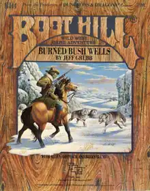 The Old West combat and role-playing game Boot Hill was one of TSR's first products, published in 1975, only a year after Dungeons & Dragons. No other supporting material was published until 1981, when TSR released Mad Mesa, the game's first adventure. Several more adventures followed, including Burned Bush Wells, the fourth Boot Hill adventure, a 32-page book with a tri-fold cover published in 1984 that was written by Jeff Grubb with contributions by Allen Hammack and Brian Blume, and interior and cover art by Larry Elmore.[2]