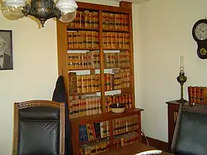 Aside from the second floor, Caswell's home was used as the site of the first Pere Marquette Township meeting:[8][9] the front half of his home was the site of the first county seat and the first courthouse in Mason County,[10][11] the kitchen served as the county's first store and post office, and the basement was used as a temporary jail.[11][12] The building is recognized as a Registered State Historic Site,[13] and the house was fully restored by the Mason County Historical Society between 1965 and 1976.[14]