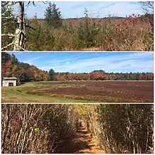 Burrage Pond Wildlife Management Area (or BPWMA) is located in the towns of Hanson and Halifax in Massachusetts, USA. The area is composed of 1,625 acres (6.58 km2) of open land for public use, including hiking,[1] biking,[2] and birding.[3][4] Hunting is permitted except on Sundays. BPWMA is made up mainly of swampy lands, old cranberry bogs (formally Bog 18, the biggest in the world), and cedar forest. It is managed by the Massachusetts Department of Fisheries and Wildlife.[5]