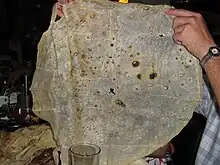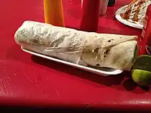 A burro percherón is a traditional dish from the Mexican state of Sonora, originating in the cities of Hermosillo and Guaymas. A variation of the classic burrito, it is one of the most popular foods in these two cities, being offered in several establishments, both establishments and mobile food trucks, where they are offered mainly at night, although recently there are establishments that offer burro percherón in its menu throughout the day. Among the main and most striking features of burro percherón is that they are large in size and have a distinct taste due to the combination and concentration of the ingredients. Traditionally the burro percherón are prepared with grilled or charcoal-roasted meat, avocado, Mexican cheese or chihuahua cheese , and tomatoes (although variants exist in each restaurant). At present, the number of establishments serving burros percherones are growing and there are chains that manage franchises extending to several parts of the country.[1]