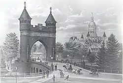![]() Print celebrating completion of the Soldiers and Sailors Memorial in 1886 by Kellog & Bulkeley print company | |