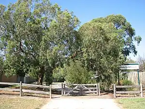 The trail starts from the Koonung Creek Trail. Look for the signpost just east of the Koonung Creek Wetlands area and the spectacular red freeway bridge. The first part of the trail is gravel and follows the Bushy Creek channel to a playground near Belmore Road. Branch off here for the Gawler Chain Trail (see Connections). The Bushy Creek Trail continues to the left past the Box Hill Miniature Steam Railway. Cross Elgar Road at the lights at the end of Belmore Road and head through the church car park opposite, through the opening in the wooden rail fence (see photo). The path is bitumen from here on. The trail follows an easement crossing several roads. There are two unclear forks in the path - keep right at each. Pedestrian lights at Station Street help with this busy road. Look for the wooden bus shelter on the eastern side of Station Street that marks the site of the first Electric Tram Depot (1889 - 1896). At Dorking Road, the bushy area ends. The trail continues along Springfield Road as segregated pedestrian and bike paths on the nature strip nearly to Middleborough Road where the trail ends.