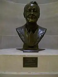 The cast-bronze bust was commissioned by the Rotary of Evansville. Evansville was Governor Orr's hometown and he was an active member of the Rotary of Evansville before his first election in 1979.[1] The bust was sculpted by Jon Ingle for $6,000.[3] The artist of the bust was Jonathan (Jon) Ingle from Evansville, Indiana. Ingle has completed previous bronze busts including Don Powers,[4] Purdue University's first band director Paul Spotts Emrick,[5] and other Indiana figures.