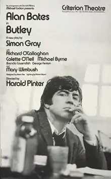 Butley is a play by Simon Gray set in the office of an English lecturer at a university in London, England.[1] The title character, a T. S. Eliot scholar, is an alcoholic who loses his wife and his close friend and colleague – and possibly male lover – on the same day.[2] The action of the dark comedy takes place over several hours on the same day during which he bullies students, friends and colleagues while falling apart at the seams.[3] The play won the 1971 Evening Standard Award for Best Play.[4]