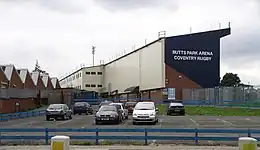 Butts Park Arena is a multi-use sports stadium in Spon End, Coventry, England. Its main use is as a rugby stadium (both union and league). It is the home ground for Coventry R.F.C. (since its opening) and was the home of Midlands Hurricanes (who moved there for the start of the 2004–05 season as Coventry Bears). It was also formerly the home ground of the Coventry Jets, an American football team. From the 2017–18 season, the stadium is also the home of Coventry United, a non league football club and their Ladies team who play in the second tier FA Women's Championship.