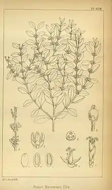 The specific name honours Peter MacOwan, who received specimens of the plant from Hutchins and passed them on to Hooker - the word 'buxus' is ancient Latin for the boxwood tree.