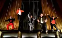 The NSYNC members portray puppets, in reference to their destiny being controlled by their manager Lou Pearlman, during their legal dispute.[22]