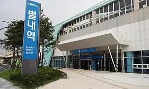 Byeollae station (Korean: 별내역; Hanja: 別內驛) is a railway station of the Gyeongchun Line that opened in December 2012. It is located at Byeollae-dong, Namyangju-si, Gyeonggi-do, South Korea. The Seoul Subway Line 8 is being extended to this station with an opening date in 2023.