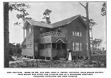 Nathan Boynton was credited as the city's founding father although he never owned the town site land.[16] When William S. Linton became insolvent, he had sold farm tracts and town lots and accepted money. The deeds he issued to homesteaders were worthless. When the 1897 lawsuit was settled, money that William S. Linton had collected was turned over to the Deweys and they issued deeds. William S. Linton had failed to file a legal plat for the town of Boynton. Frederick S. Dewey and Byrd Spilman Dewey filed the plat for the Town of Boynton in the Dade County courthouse on September 26, 1898. In addition, they filed a plat for "Dewey's Subdivision" which contained farming tracts. The Deweys built their first house in Boynton (called Spilman Cottage), using it as a weekend home. Adjacent to the home, Fred Dewey planted the first orange grove in Boynton along the coastal canal, where today's Sterling Village development stands.[17] They donated lots for a Methodist church,[18] donated the proceeds from lot sales to pave streets, and Mrs. Dewey donated a large portion of her personal library to start the town's first library, with the books held at the local post office. The Deweys built a second home in Boynton (called Ben Trovato) where they lived from 1909 to 1911. Health concerns forced them to move to Tennessee, where Mr. Dewey entered a Civil War soldier's home in Johnson City.