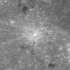 The rays of Byrgius A extend for hundreds of km, and it is the brightest feature in the region.