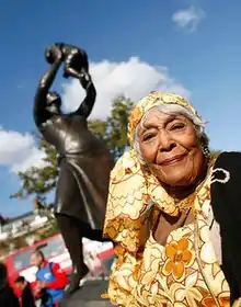 The Bronze Woman Project was a charitable organization that successfully raised funds for a public monument to womanhood in Britain.[5] Bronze Woman is a ten-foot statue of a mother and child, designed by sculptor Ian Walters, and after his death completed by Aleix Barbat. It was unveiled on a busy traffic junction in Stockwell, south London[6] on 8 October 2008. The Baroness Scotland of Asthal delivered a keynote speech; alongside Nobrega around the statue were artist Anissa Jane, entrepreneur Sonita Alleyne, Rosalind Howells, Baroness Howells of St Davids, community activist Jessica Huntley, MOBO Awards founder Kanya King, diversity expert Brenda King, equal rights campaigner Doreen Lawrence and community campaigner Sybil Phoenix.[1] It is the first public statue of a black woman to be on permanent display in England.