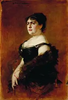 After her first husband's premature death she married Mihály Munkácsy who was to become one of the greatest Hungarian painters renowned for his genre pictures and large-scale biblical paintings. The guest lists of people attending their social events both in Luxembourg and Paris read like the who is who of the Belle Époque. Among their distinguished guests we find her relatives, the Brasseur-Bian, Luxembourg steel magnates, and members of the Luxembourg government like the Prime Minister Paul Eyschen. Among the international personalities we should highlight the musicians and composers Franz Liszt who gave his last piano recital in Luxembourg, Anton Rubinstein, Charles Gounod, Jules Massenet, Charles-Marie Widor, Ignacy Jan Paderewski (later President of Poland), Jules Massenet, Camille Saint-Saëns and most probably Richard Wagner and not to forget Sir Alexander Campbell Mackenzie, Knight Commander of the Royal Victorian Order. Among the politicians we should point out Raymond Poincaré, President and Prime Minister of France, members of the diplomatic corps like the count Frédéric de Pourtalès and the rocambolesque Camille Armand Jules Marie, Prince de Polignac. Among the writers, Anatole France, Alphonse Daudet, Alexandre Dumas fils, Emile Zola and many more. Among the big industrialists, Ferdinand de Lesseps, constructor of the Suez canal, and the magnate of journalism Joseph Pulitzer and the journalist Édouard Hervé.[2][3]