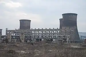 Privatization took place in 1998, when the works, by that time employing 1500, were broken up into twelve companies that began to go bankrupt one by one.[7][10] The core business among these, called Sidermet, produced iron tubes.[10] This company was sold by the state in 2003 and its new owners filed for bankruptcy in late 2005. By that point, Sidermet had 200 employees remaining, for the sole purposes of safeguarding and maintenance of the site.[11] In 2010, there were two firms left standing, with under seventy employees. Much of the structure had been stolen for its scrap iron, and what was still functioning was under frequent threat from metal thieves. The scrap iron would be sorted and sold on land that was part of the works.[7]