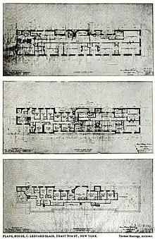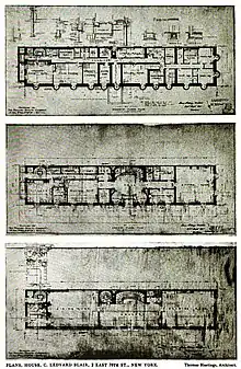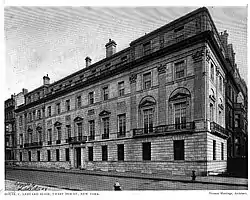 The Beaux-Arts mansion, designed by Carrère & Hastings,[1] was at 2 East 70th Street, at the southeastern corner with Fifth Avenue.[2][3] The house overlooked the gardens of the Henry Clay Frick House at 1 East 70th Street, which had also been designed by Carrère & Hastings.[4] It was built by Norcross Brothers at a projected cost of between $150,000 and $200,000.[3] The Lord Electric Company received the electric contract, Norcross Brothers furnished most of the rooms, and C. Brainard was consulting engineer.[5]