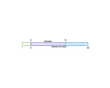 The protein sequence also contains a repeat sequence, the three continuous repeat sequences are located from amino acid position Gln65 to Cys127.[11] The repeat sequences can be observed in the conceptual translation on the right. They are within the DNA translocase Ftsk domain and the cysteine rich region. The repeat sequences are conserved across mammal orthologs. The conservation of each individual amino acid can be observed in the LOGO below.