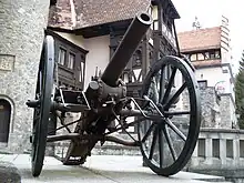 The Krupp C64 (sometimes C/64) steel, breech loaded field gun (8cm caliber, 4 kg[1] projectile, 3800m range)[2] was one of the main artillery pieces of the Prussians in the 1870–1871 war with France. It was superior to the French counterparts in every way: accuracy, rate of fire, range and reliability of the fuse.[3][2] The obturation, a big problem in earlier Krupp rifled breech loaders, was ensured by Broadwell ring design borrowed from American engineer Lewis Wells Broadwell.[4]