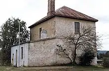 It occupies a commanding position on a bluff on what was once the main road entering the town from the north. It is a simple mid Victorian Colonial style commercial building.[3][1]