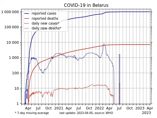 - ↑ "COVID-19 Technical mission of experts to the Republic of Belarus: 8–11 April 2020. Executive summary". euro.who.int. 28 April 2020. Archived from the original on 14 July 2020. Retrieved 29 April 2020.