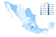On May 1, Mexico surpassed 20,000 infections of COVID-19.[50] Mexicanos contra la corrupción (Mexicans against corruption) alleged that Léon Manuel Bartlett, son of Manuel Bartlett the head of the Comisión Federal de Electricidad (CFE), fraudulently tried to sell overpriced ventilators to the Mexican Institute of Social Security (IMSS) in Hidalgo.[51] On May 2, Mexico surpassed 2,000 deaths due to the COVID-19 pandemic.[52] At least forty Mexican and Guatemalan farm workers in Canada contracted coronavirus, that according to the United Food and Commercial Workers.[53]