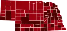 ![]() Map of the outbreak in Nebraska by confirmed total infections per 100,000 people (last updated March 2021)