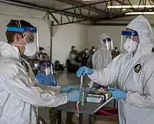![]() Collecting COVID-19 test samples at the Sarpy County Fairgrounds in Springfield | |