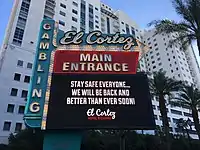 In June 2020, it was reported that many visitors to the Las Vegas Strip were not wearing masks.[151] Due to a statewide decrease in mask usage, the Nevada Gaming Control Board ordered that players and spectators of table games must wear masks if the table does not have protective barriers installed.[152] As cases continued to rise, Sisolak asked his COVID-19 advisory team to review enhanced policies regarding masks for the public.[153] The Culinary Workers Union said it would take legal action unless gaming properties implemented more COVID-19 safety measures, including a mask requirement for all casino guests and employees.[154]