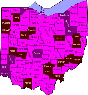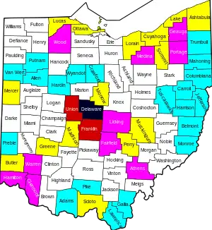 In late June and early July, some counties in Ohio experienced a sharp increase in cases.[26]