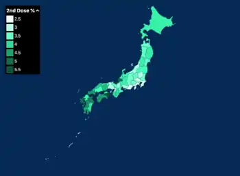 - ↑ Japan COVID-19 Vaccine Tracker: Prefectures Map. By George Karabassis. Click on the 1M and 2x buttons on the bottom right of the map to produce the map shown above.