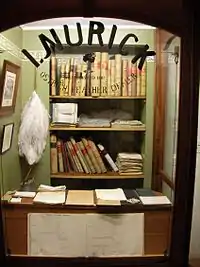 The CP Nel Museum is one of a few secular museums in the world to house a synagogue. At the suggestion of Isidore Barron, who had been a member of the museum's Board of Trustees, the Jewish gallery was opened in 1973.[8] This room is a reconstruction of the old St. John Street Synagogue as it was in 1896,[4] and depicts the contribution of Oudtshoorn's Lithuanian Jewish community to the ostrich industry.[2] The synagogue is still occasionally used for services.[8]