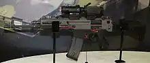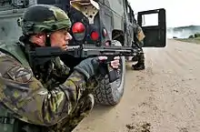 The CZ 805 BREN is a gas-operated modular assault rifle designed and manufactured by Česká zbrojovka Uherský Brod.[1] The modular design enables users to change the calibre of the weapon to 5.56×45mm NATO or 7.62×39mm intermediate cartridges by quick change of barrel with gas tubes, breech block, magazine bay and magazine.[2]