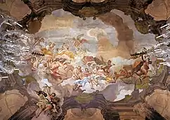 The Ca' Dolfin Tiepolos are a series of ten oil paintings made c.1726–1729 by Giovanni Battista Tiepolo for the main reception room or salone of the Palazzo Ca' Dolfin, the palazzo of the patrician Dolfin family (sometimes spelled Delfini, Delfino, or Delfin) in Venice. The paintings are theatrical depictions of events from the history of Ancient Rome, with a typically Venetian emphasis on drama and impact rather than historical accuracy. They were painted on shaped canvases and set into the architecture with frescoed surrounds.
