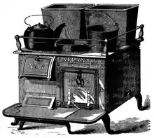 At one time a small kitchen was called a caboose if aboard a merchantman (or in Canada, on a timber raft[1]), but a galley aboard a warship.[2] The term was sometimes also applied to the cast-iron stove used for cooking on deck[2][3] or in galleys during the early 19th century, as well as an outdoor oven or fireplace.[4]