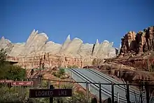 Pixar's 2006 animated film Cars depicts a Cadillac Range as a mountain formation; the film's credits directly acknowledge the Ant Farm collective and the Cadillac Ranch. In a case of art-imitating-art-imitating-art, that image from the film Cars has been constructed as a centerpiece of Cars Land at Disney California Adventure.