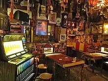 Café 't Mandje, on Zeedijk 63 in the historic heart of Amsterdam was opened in 1927 by lesbian Bet van Beeren. After her death in 1967, her youngest sister Greet continued the business until it closed in 1982, but the bar and its entire interior was preserved by her ever since and could be visited upon request. Just before her death in August 2007, she took the initiative to have the bar reopened. The bar has been open under the management of her niece Diana since 29 April 2008.[1] Orlando Lansdorf used to work at 't Mandje as a barman.[4]