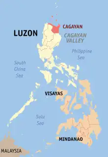 Cagayan's 3rd congressional district is one of the three congressional districts of the Philippines in the province of Cagayan. It has been represented in the House of Representatives of the Philippines since 1987.[3] The district consists of the provincial capital city of Tuguegarao, and adjacent municipalities of Amulung, Enrile, Iguig, Peñablanca, Solana, and Tuao. It is currently represented in the 18th Congress by Joseph L. Lara of the PDP–Laban.[4]