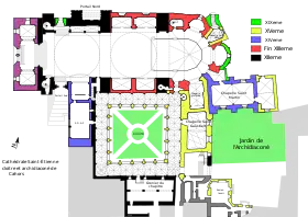 The church was built by bishop Gerard de Cardaillac[1] in the 11th century, over a church erected in the 7th century by St. Didier of Cahors. It was consecrated by Pope Calixtus II on September 10, 1119, and completed around 1135. The church, located in the city's centre, has the sturdy appearance of a fortified edifice: at the time, the local bishops were in fact also powerful feudal lords in their role as counts and barons of Cahors.