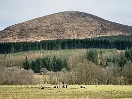 Cairnsmore of Fleet is an isolated mountain in the Southern Uplands of Scotland. The mountain forms an unafforested granite massif, whose highest point is about 10 kilometres (6.2 mi) east of Newton Stewart. It is the highest of the "Solway Hills" sub-range, and the southernmost of Scotland's 219 Grahams, thus making it, or rather its subsidiary top, Knee of Cairnsmore, the most southerly mountain in Scotland.[4] The view to the south takes in the Cree Estuary and Wigtown Bay, and extends as far as the Lake District, the Isle of Man and Snowdonia.[5] The highest summits of the Galloway Hills can be seen to the north, and Ireland is in the view to the west.[6]