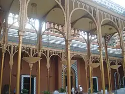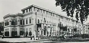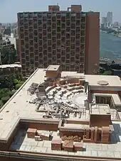The Gezirah Palace was commissioned by Khedive Ismail and designed by Carl von Diebitsch to host French Emperor Napoleon III and his wife Empress Eugénie during the celebration of the opening of the Suez Canal in 1869.[2] Ismail asked the architect to make it resemble the Palace of Versailles.[2] In 1880, the palace was seized by Ismail's creditors. It was eventually leased to the Compagnie Internationale des Grands Hotels, who opened it as The Ghezireh Palace Hotel in October 1894.[3] During World War I, the hotel served as the No.2 Australian General Hospital, after the Mena House was unable to cope with the huge number of casualties from the Battle of Gallipoli. In 1919, The Ghezireh Palace Hotel was sold to Syrian businessman Habib Lotfallah and converted back to a private residence.[4] The palace was nationalized by Gamal Abdel Nasser in 1952[5] and eventually converted back to a hotel, reopening in 1962 as the Omar Khayyam Hotel.[5] In the late 1970s, the two large towers were added and the entire hotel was completely rebuilt.[5] President Hosni Mubarak presided over the grand reopening in 1982[6] as the Cairo Marriott Hotel.[7] In 20 December 2023, Icon Company, a subsidiary of Talaat Moustafa Group, acquired 51% of Legacy Hotels Company, which owns the hotel.[8]